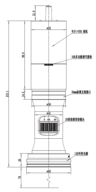 - Flexible Beleuchtungs- und Schnittstellenoptionen: Serienmäßiges drahtloses LED-Ringlicht, optionaler Austausch gegen Polarisations- oder Koaxialbeleuchtung; Rückseitig stehen HDMI 1.4, USB-Direktverbindungen und Wi-Fi-Übertragung bereit.